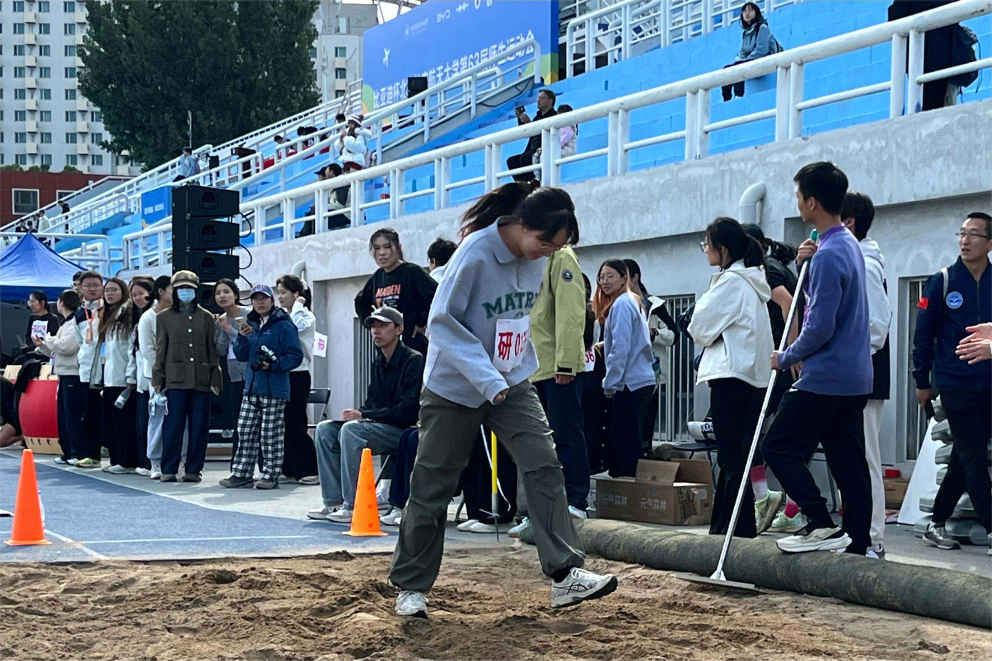 赛场上,学院师生参与了传统田径和趣味比赛等多个项目的激烈角逐。运动员们奋力拼搏,每一次冲刺、每一次跳跃都凝聚着汗水与努力。赛场下,师生们互相鼓励,共同为选手加油助威,展现了深厚的师生情谊和强烈的集体荣誉感。
